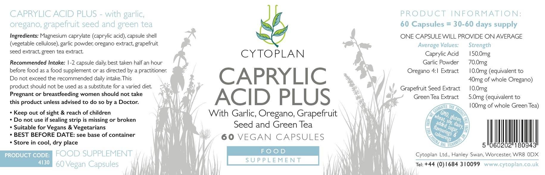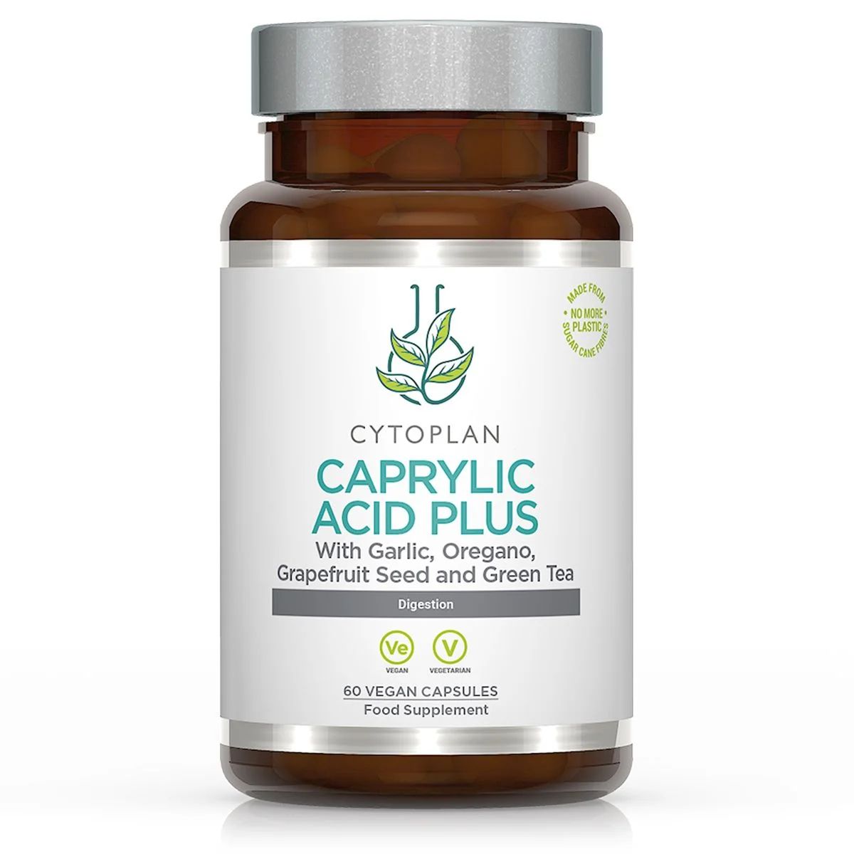 - Caprylic Acid Plus kombinon acidin kaprilik me hudhrën, ekstraktin e rigonit, ekstraktin e farave të grejpfrutit dhe ekstraktin e çajit jeshil për të mbështetur shëndetin e tretjes.