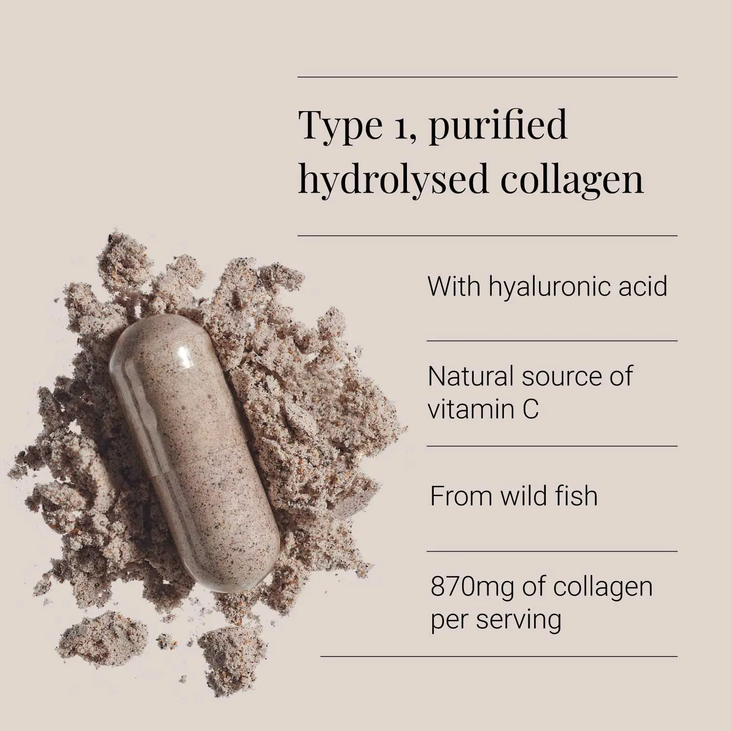 100% kolagjen i hidrolizuar marin (nga peshqit),pluhur acai organik,pluhur organic camu camu, acid hyaluronik.