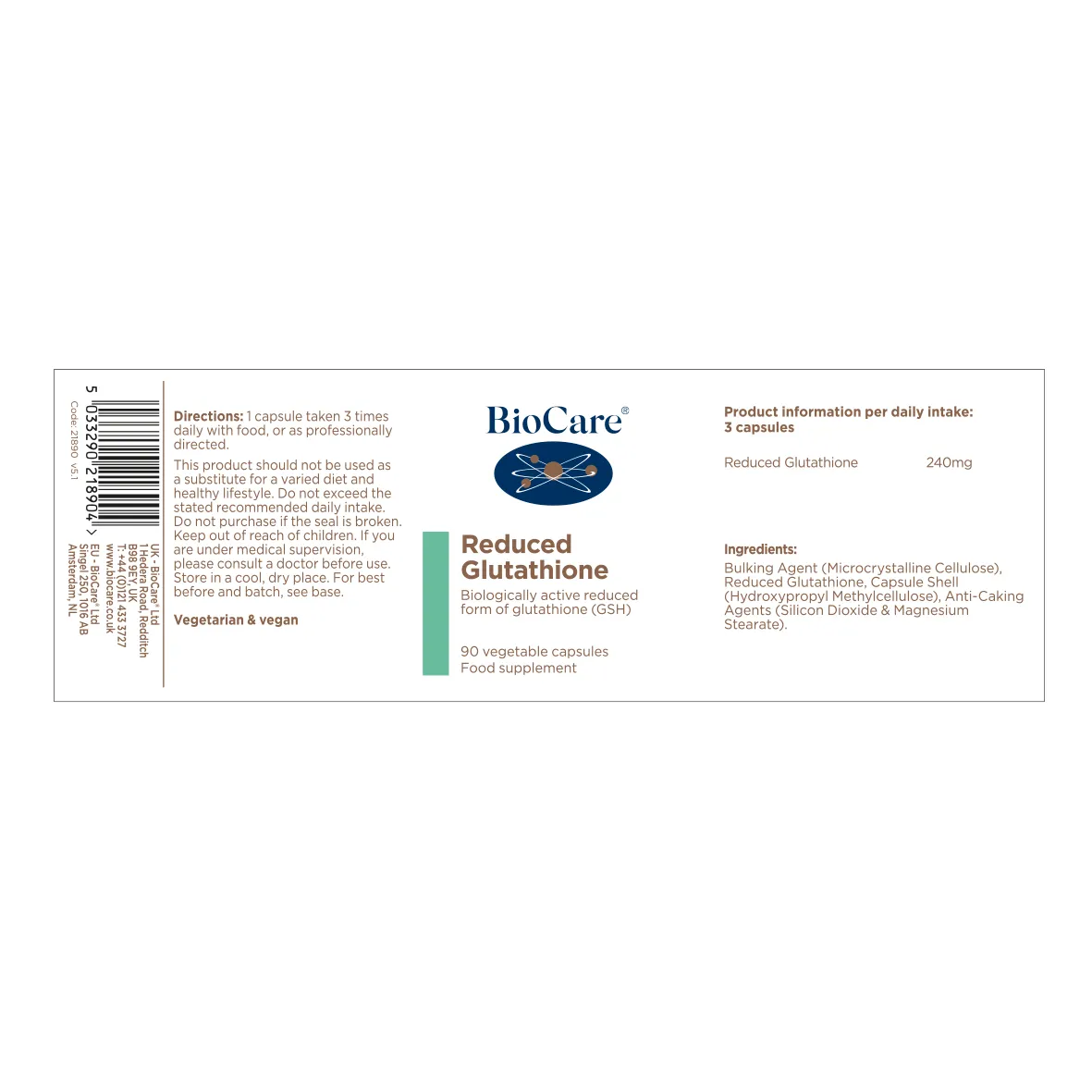 Agjent zmadhues (celulozë mikrokristaline), glutation i reduktuar, guaskë kapsule (HPMC), agjent kundër grumbullimit (dioksid silikoni dhe stearat magnezi).