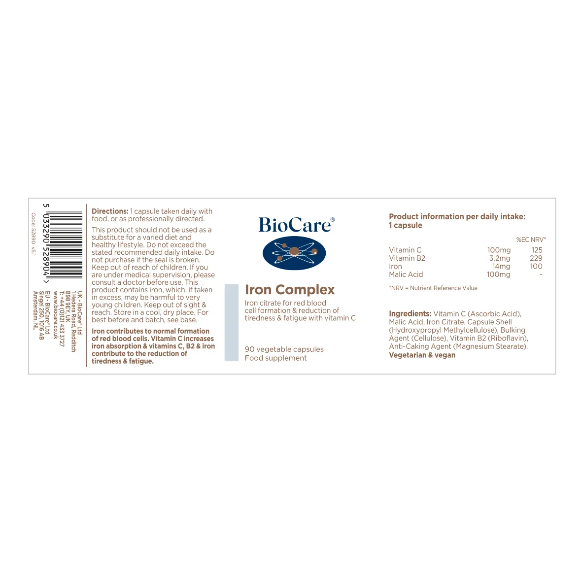 Vitamina C (si Acid Askorbik), Acid Malik, Citrat Hekuri, Kapsulë (Hidroksipropil Metilcelulozë), Agjent Bulking (Celulozë), Riboflavin (Vitamina B2), Agjent Anti-Caking (Stearati i Magnezit)