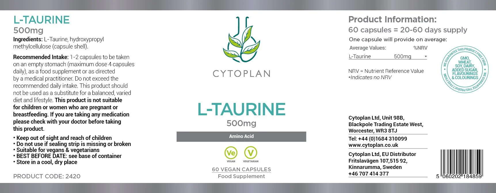 L-taurina është një aminoacid që përmban squfur. Taurina përdoret në prodhimin e acideve biliare të cilat janë të rëndësishme për tretjen dhe përthithjen e yndyrës, dhe gjithashtu Taurina është aminoacidi më i bollshëm në retinë (në pjesën e pasme të syrit). Ideal edhe per personat qe vuajne nga zhurmat e veshit!