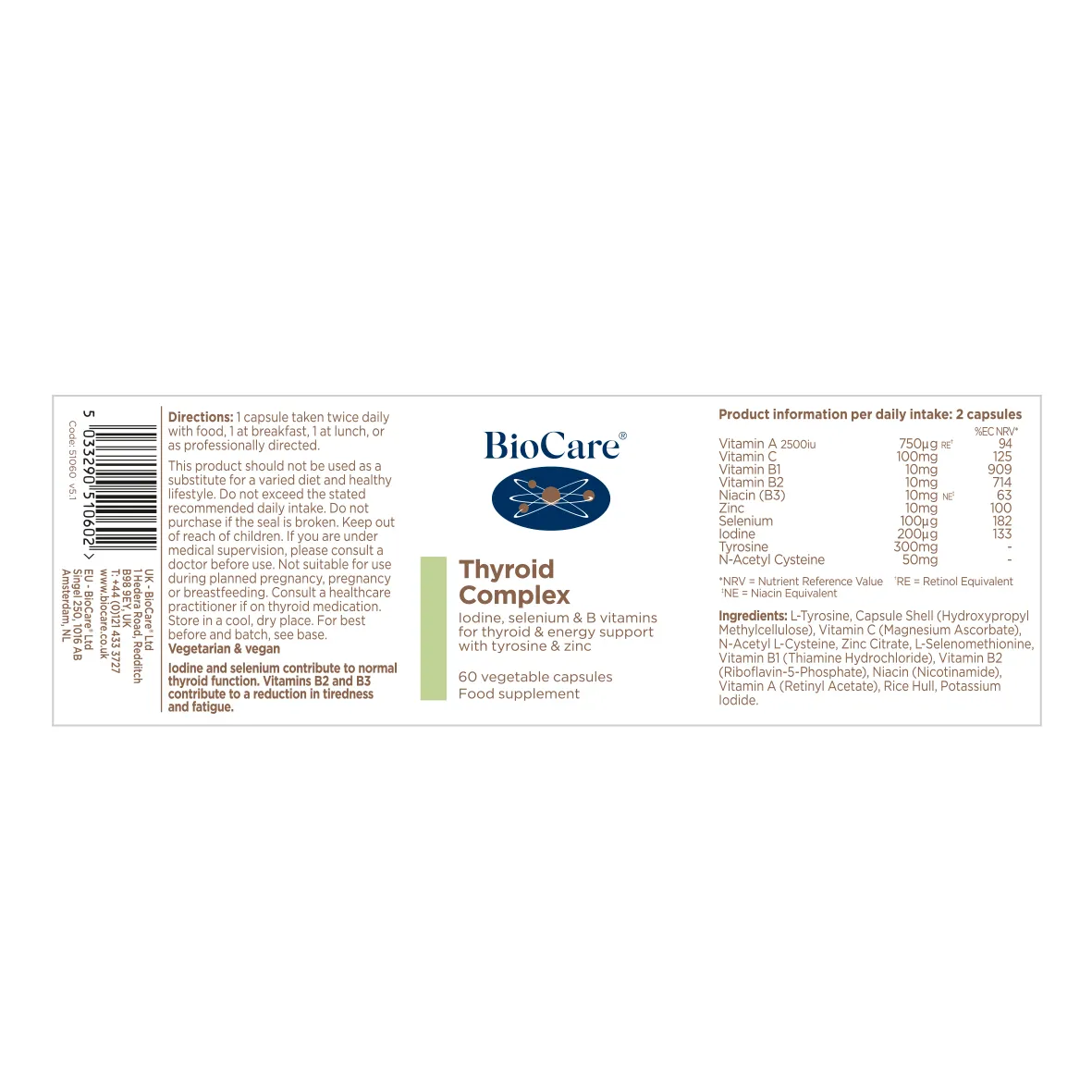 Një kombinim unik i ushqyesve të fuqishëm duke përfshirë jodin dhe selenin për mbështetjen e tiroides dhe vitaminën B3 dhe vitaminën C për energjinë.